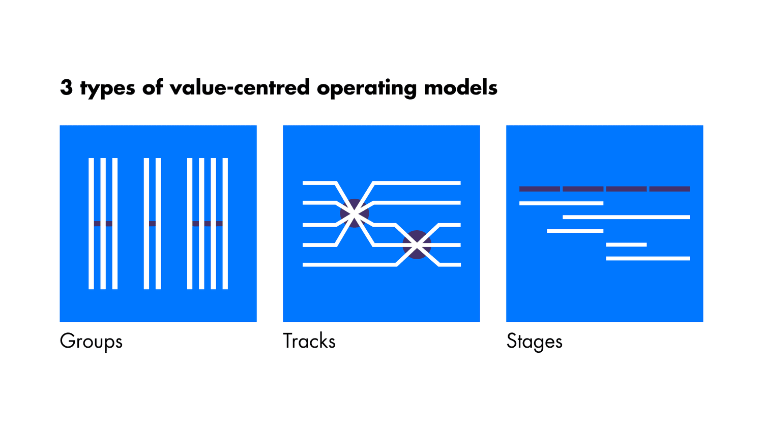 Designing whether your organisation would deliver more value being organised in groups, tracks or stages is only the first step. The next challenge is knitting it together. How enabling functions support delivery, how end-to-end oversight keeps the whole flowing, and how cross-functional teams, governance, leadership and accountability make it real.