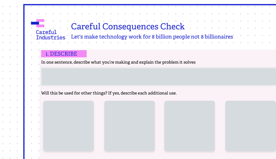 "The Careful Consequence Check can be used to make a rapid assessment of the potential risks and issues involved in using or adopting an AI-powered product, feature, or service. It’s not a substitute for a full risk analysis – it’s meant to answer the question, “is this okay?” and be the start of a process of enquiry, learning and monitoring. "